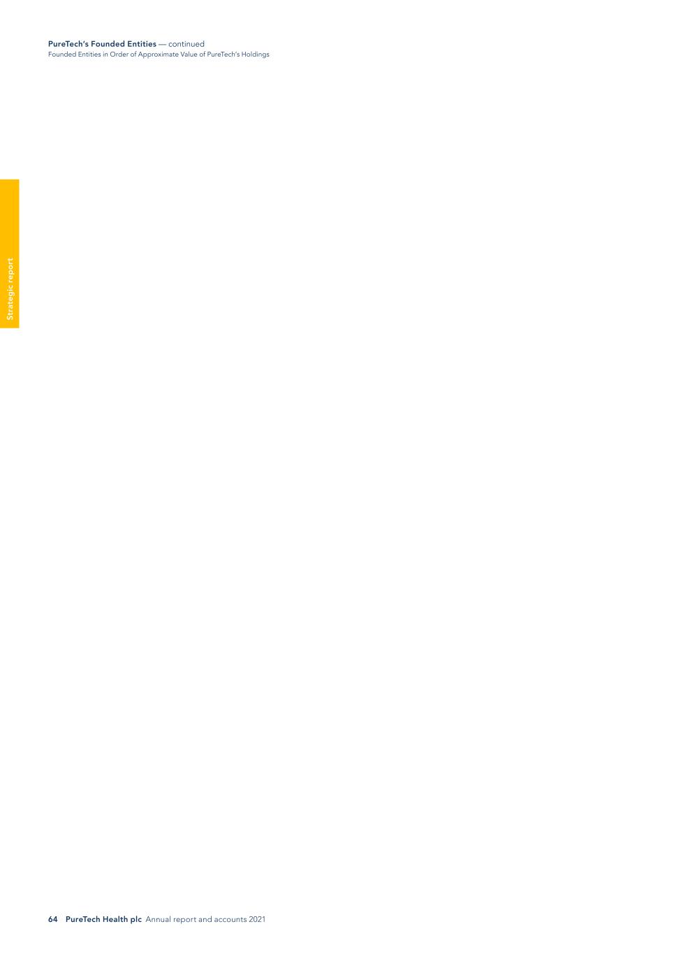 64 PureTech Health plc Annual report and accounts 2021 St ra te g ic r ep o rt PureTech’s Founded Entities — continued Founded Entities in Order of Approximate Value of PureTech’s Holdings