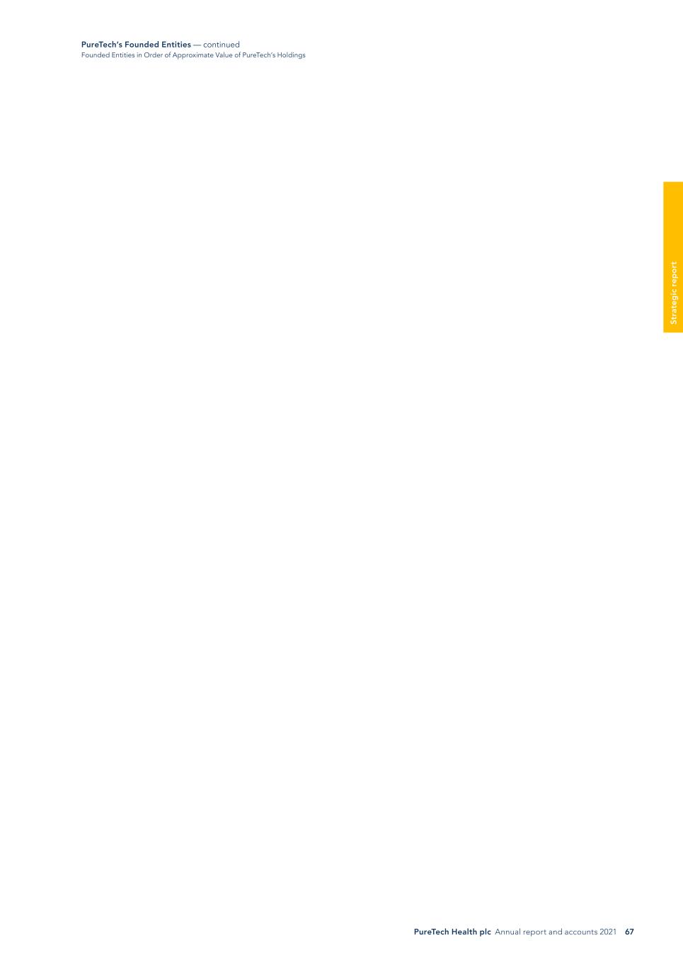 66 PureTech Health plc Annual report and accounts 2021 St ra te g ic r ep o rt PureTech’s Founded Entities — continued Founded Entities in Order of Approximate Value of PureTech’s Holdings
