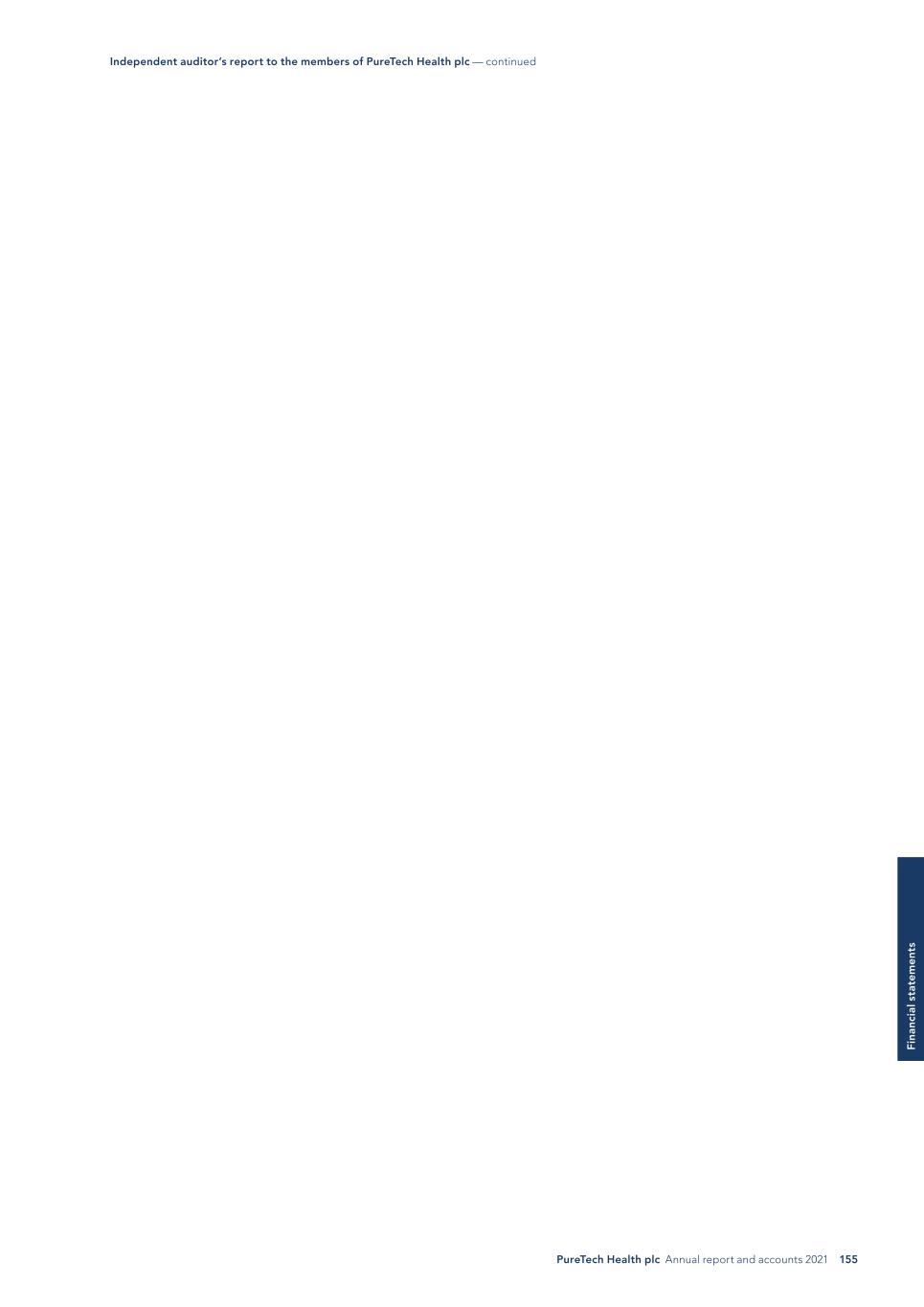 PureTech Health plc Annual report and accounts 2021 155 Fi na nc ia l s ta te m en ts Independent auditor’s report to the members of PureTech Health plc — continued