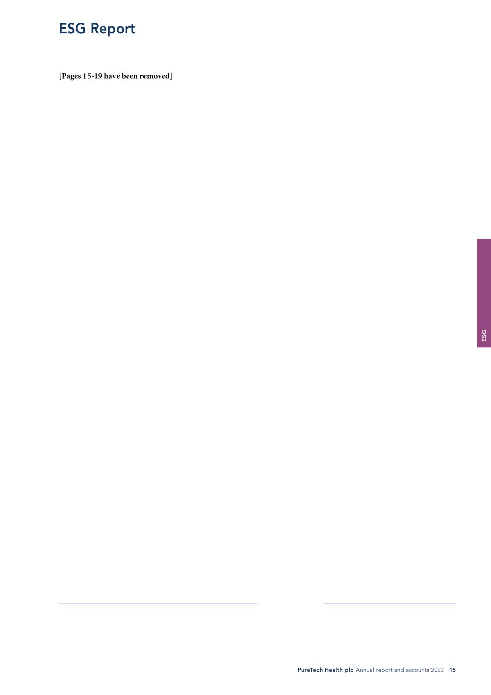 E SG PureTech Health plc Annual report and accounts 2022 15 ESG Report [Pages 15-19 have been removed]