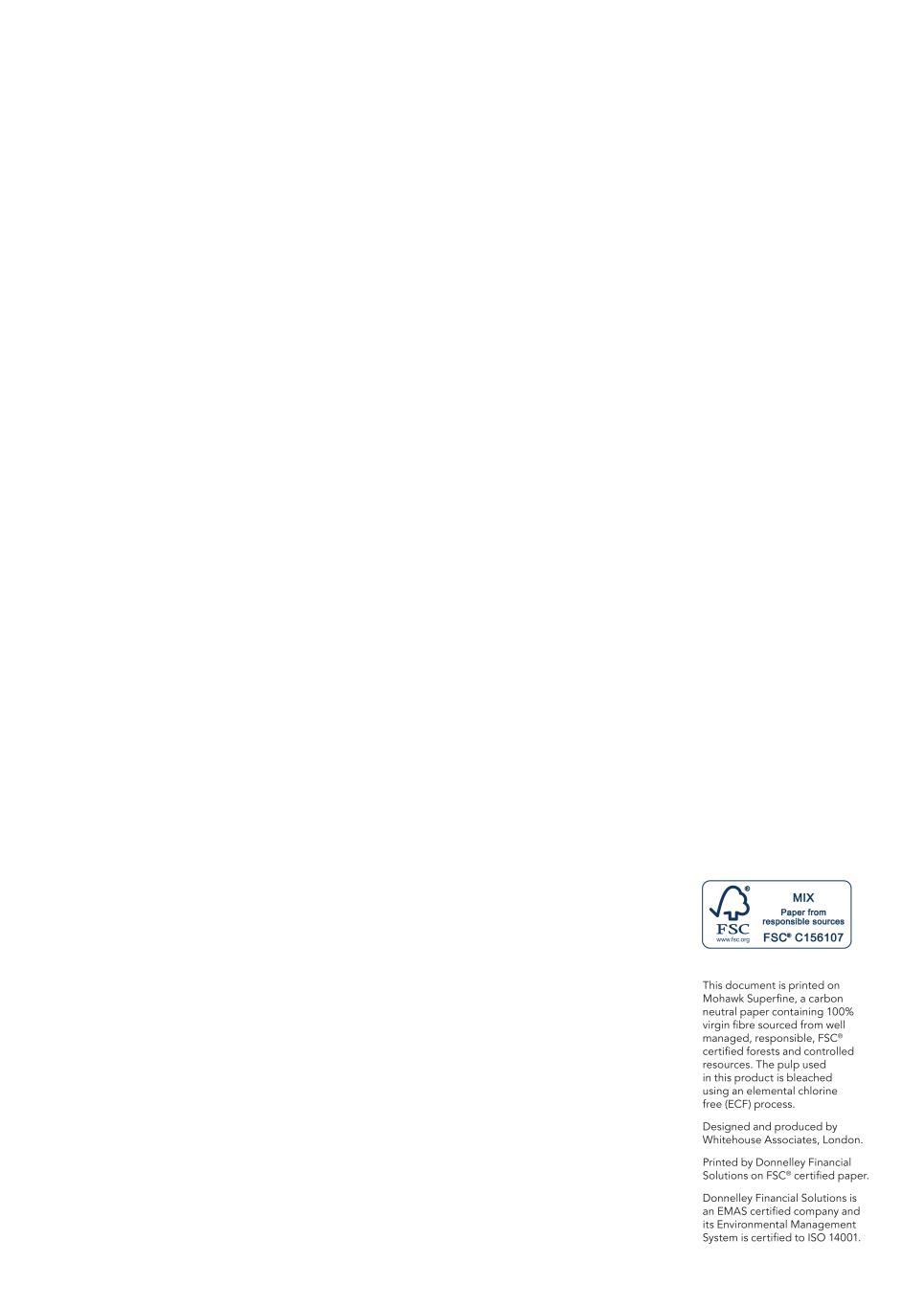 This document is printed on Mohawk Superfine, a carbon neutral paper containing 100% virgin fibre sourced from well managed, responsible, FSC® certified forests and controlled resources. The pulp used in this product is bleached using an elemental chlorine free (ECF) process. Designed and produced by Whitehouse Associates, London. Printed by Donnelley Financial Solutions on FSC® certified paper. Donnelley Financial Solutions is an EMAS certified company and its Environmental Management System is certified to ISO 14001.