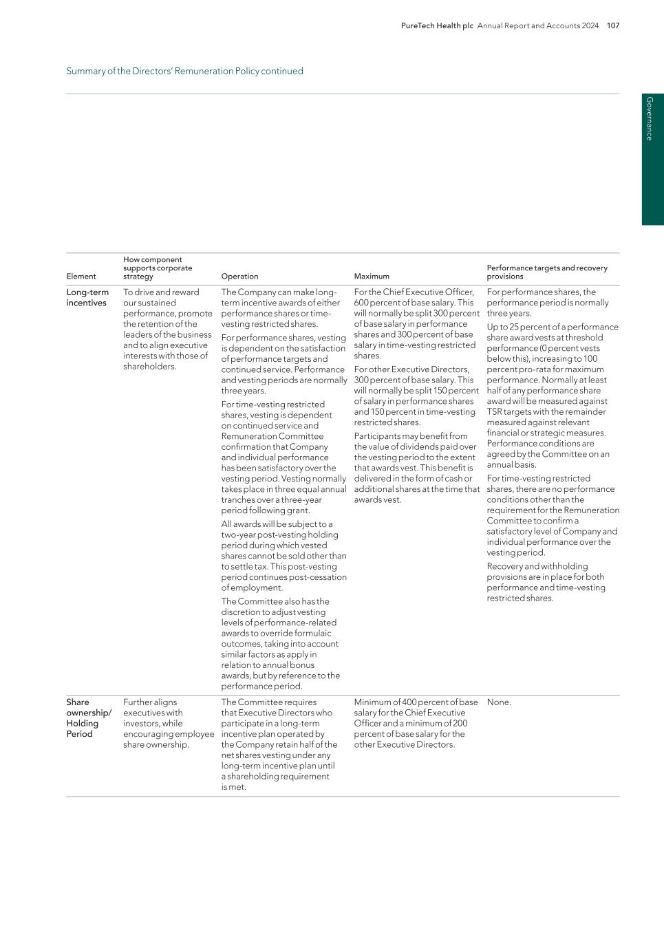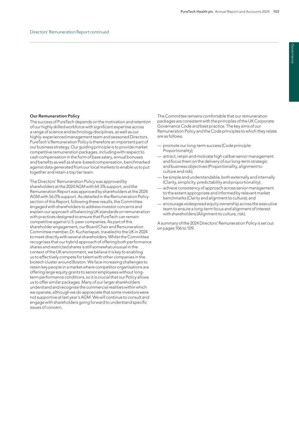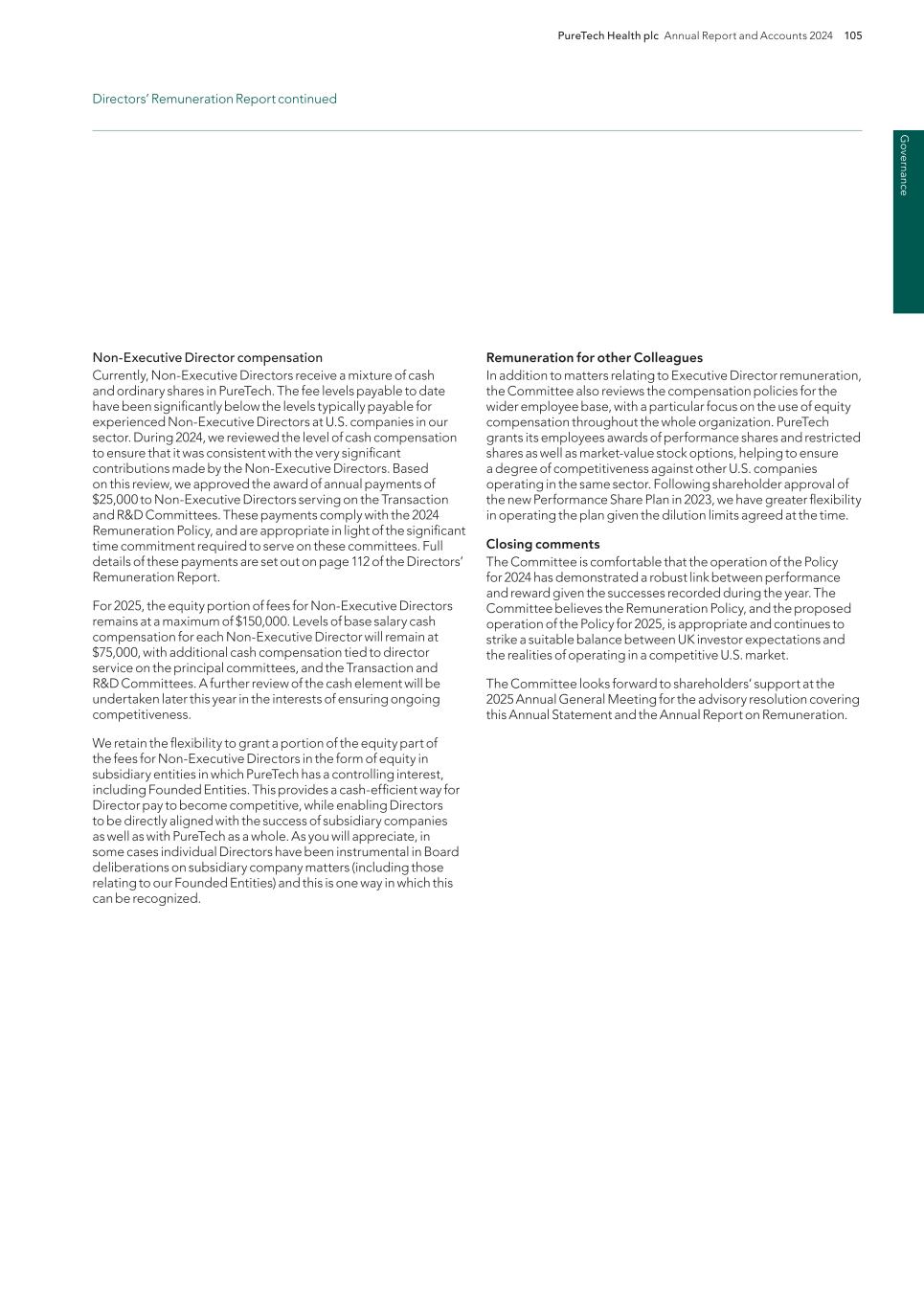 48  PureTech Health plc Annual Report and Accounts 2024 E SG  re p o rt G ov er na nc e