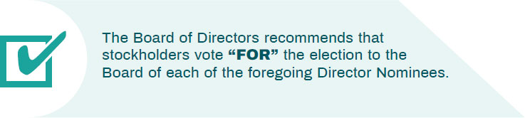 1. | To elect Mses. Karen C. Francis, Gloria R. Boyland and Maryrose Sylvester and Messrs. David M. Foulkes, Christopher J. Klein and Mark D. Morelli to serve as directors for a one-year term expiring at the 2025 annual meeting of stockholders and until their successors have been elected and qualified. |