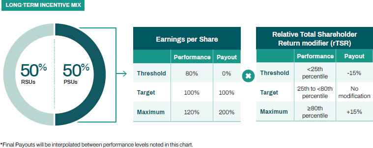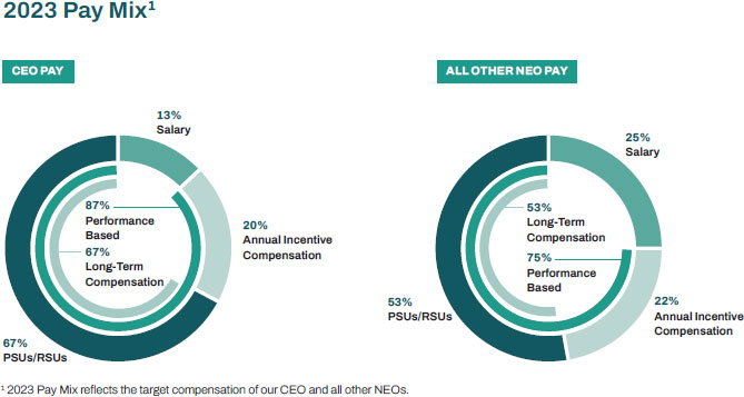 Our executive compensation program is structured within a strong framework of compensation governance with a bias toward compensation that is dependent on long-term company performance and with compensation that is balanced to mitigate risks appropriately.