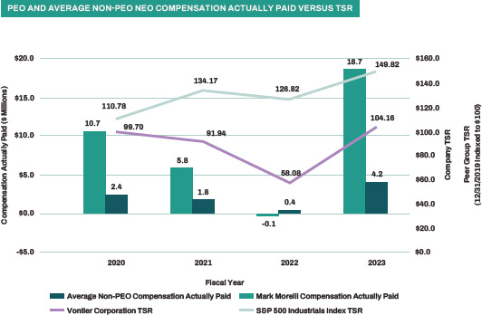 The following graph compares the amount of compensation actually paid to Mr. Morelli and the average amount of compensation actually paid to the Company’s NEOs as a group (excluding Mr. Morelli) with the Company’s cumulative TSR over the four years presented in the table.