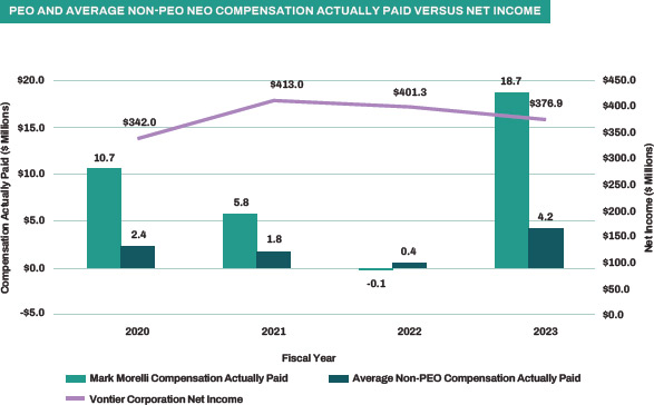 The following graph provides the amount of compensation actually paid to Mr. Morelli and the average amount of compensation actually paid to the Company’s NEOs as a group (excluding Mr. Morelli) compared with the Company’s net income over the four years presented in the table.