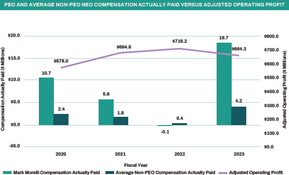 The following graph compares the amount of compensation actually paid to Mr. Morelli and the average amount of compensation actually paid to the Company’s NEOs as a group (excluding Mr. Morelli) with Adjusted Operating Profit over the four years presented in the table.