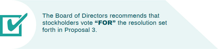 We are asking our stockholders to indicate their support for our named executive officer compensation as described in this proxy statement. Accordingly, we are asking our stockholders to vote on an advisory basis “FOR” the following non-binding resolution: