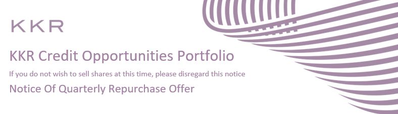 The purpose of this notice is to inform you of the upcoming quarterly repurchase offer for KKR Credit Opportunities Portfolio (the "Fund"). If you have no need or desire to sell your shares this quarter, simply disregard this notice. We will notify you again next quarter and mail new documents to be completed in connection with the next repurchase offer.