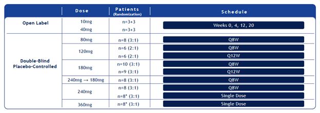 | ● | Clinical responses were seen as early as 1 week post-dose; and |