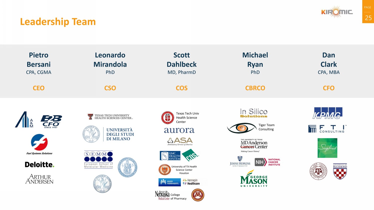 PAGE | 25 Leadership Team Michael Ryan PhD CBRCO Tiger Team Consulting Scott Dahlbeck MD, PharmD COS Texas Tech Univ Health Science Center University of TX Health Science Center Houston College of Pharmacy Dan Clark CPA, MBA CFO CEO Pietro Bersani CPA, CGMA CSO Leonardo Mirandola PhD