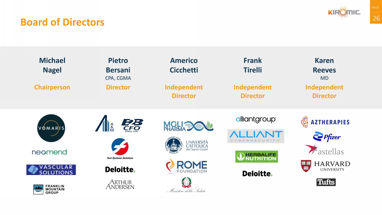 PAGE | 26 Board of Directors Michael Nagel Chairperson Americo Cicchetti Independent Director Director Pietro Bersani CPA, CGMA Karen Reeves MD Independent Director Frank Tirelli Independent Director