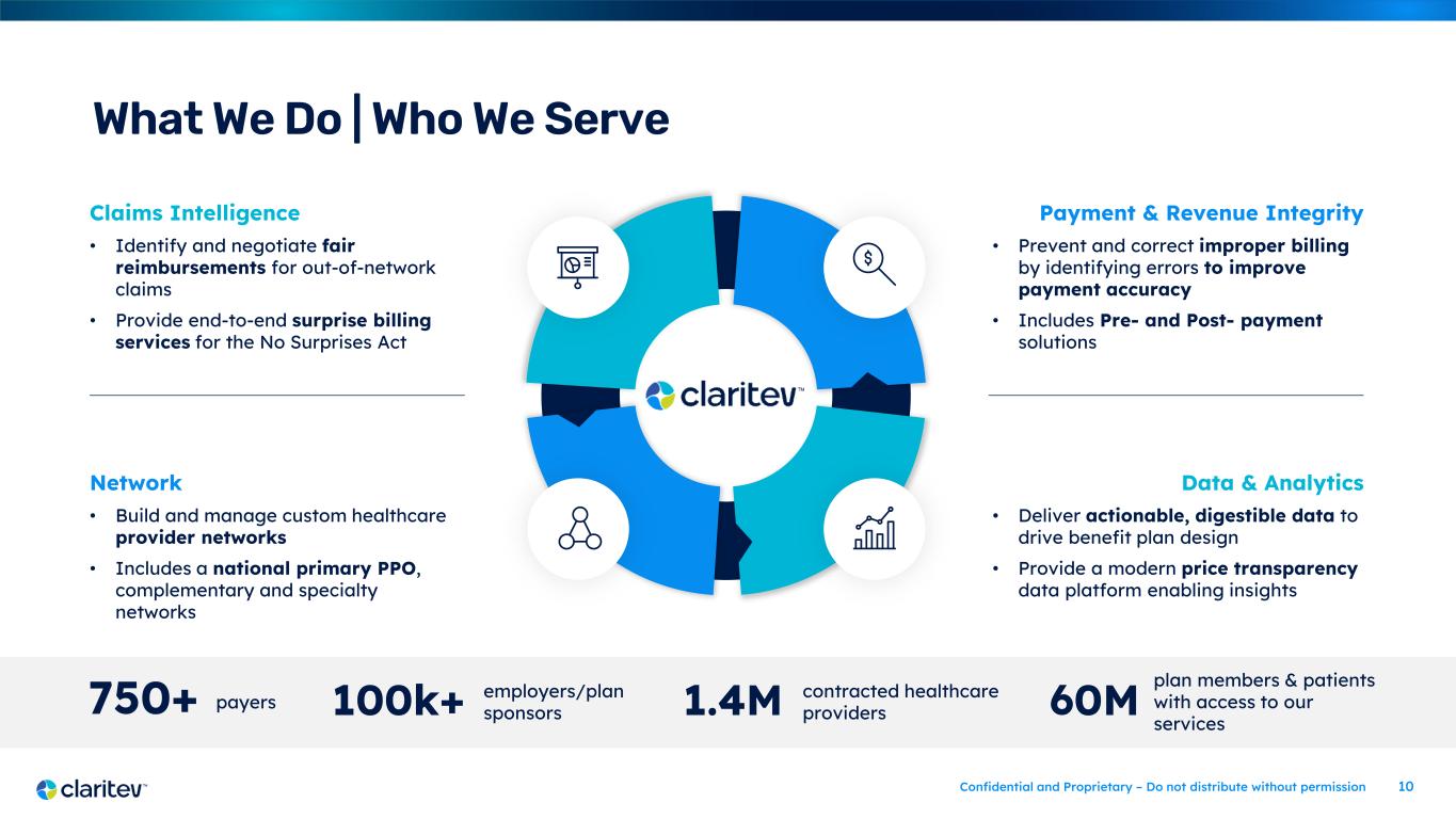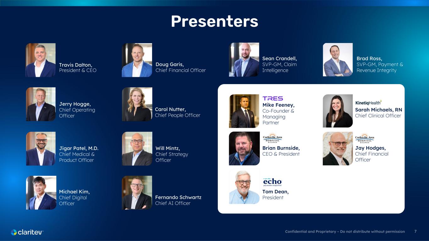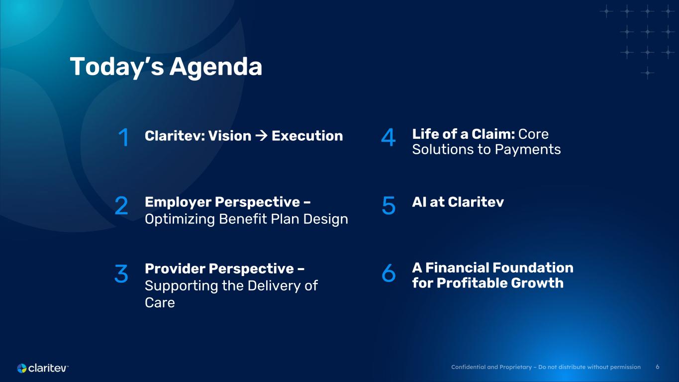 Confidential and Proprietary – Do not distribute without permission 6 1 Claritev: Vision Execution 2 3 4 Life of a Claim: Core Solutions to Payments 5 AI at Claritev 6 A Financial Foundation for Profitable Growth Today’s Agenda Employer Perspective – Optimizing Benefit Plan Design Provider Perspective – Supporting the Delivery of Care