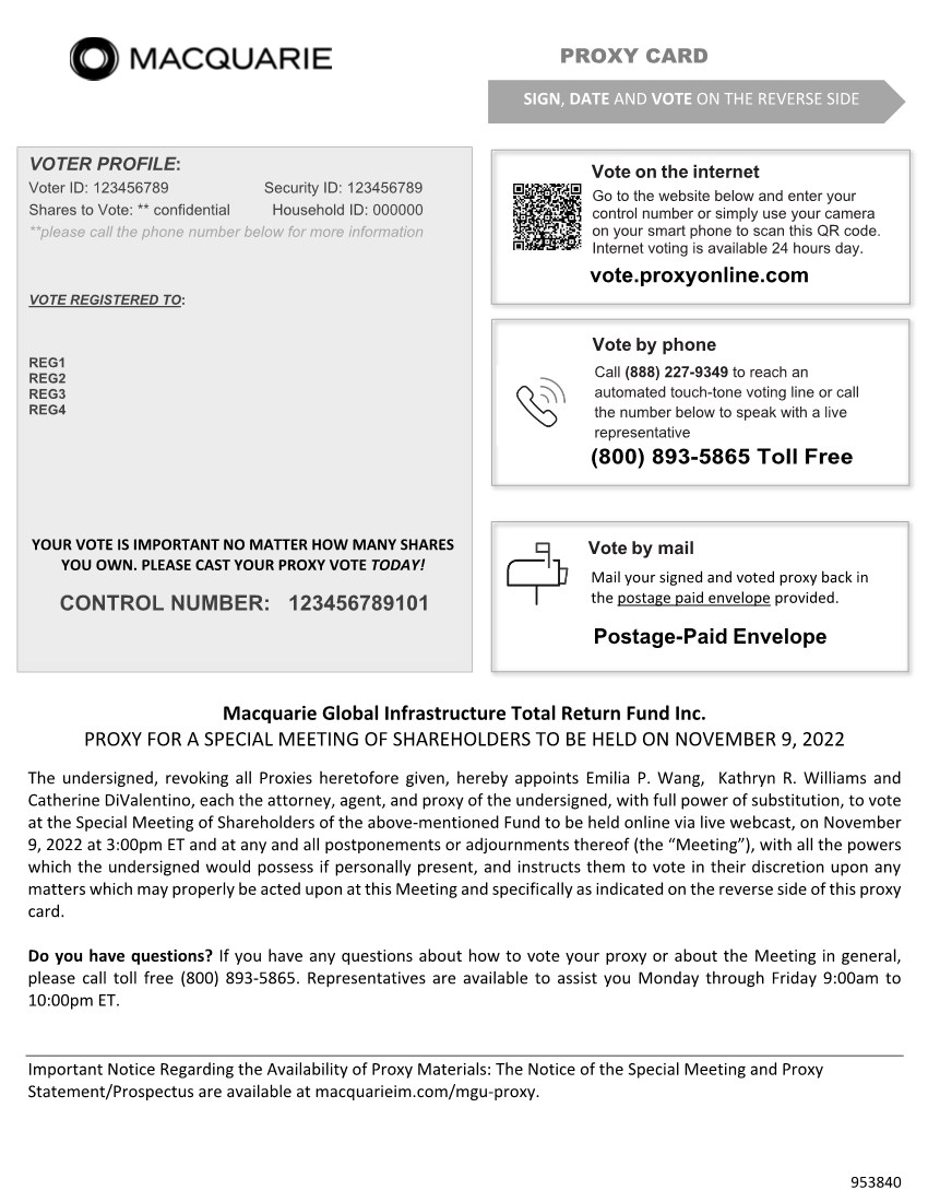 The combined proxy statement/prospectus, the Notice of the Special Meeting, any accompanying materials and any amendments or supplements to the foregoing materials that are required to be furnished to shareholders are available to you on the Internet at macquarieim.com/mgu-proxy.