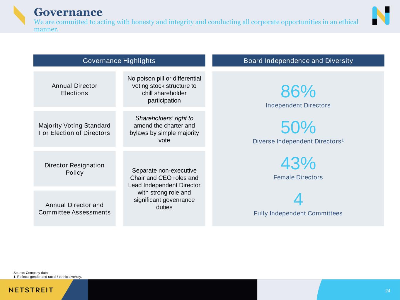 Investments are lease agreements in place at owned properties, properties that have leases associated with mortgage loans receivable, developments where rent commenced, interest earning developments, or in the case of master lease arrangements each property under the master lease is counted as a separate lease. Rent Coverage Ratio means the ratio of tenant-reported or, when unavailable, management’s estimate based on Placer.ai adjusted sales and corporate margins, annual EBITDA and cash rent attributable to the leased property (or properties, in the case of a master lease) to the annualized base rental obligation as of a specified date. Occupancy is expressed as a percentage, and it is the number of leased investments divided by the total number of investments owned, excluding properties under development. OP Units means operating partnership units not held by NETSTREIT. Weighted Average Lease Term is weighted by the annualized base rent, excluding lease extension options and investments associated with mortgage loans receivable. 38 Non-GAAP Measures and Definitions (cont’d)