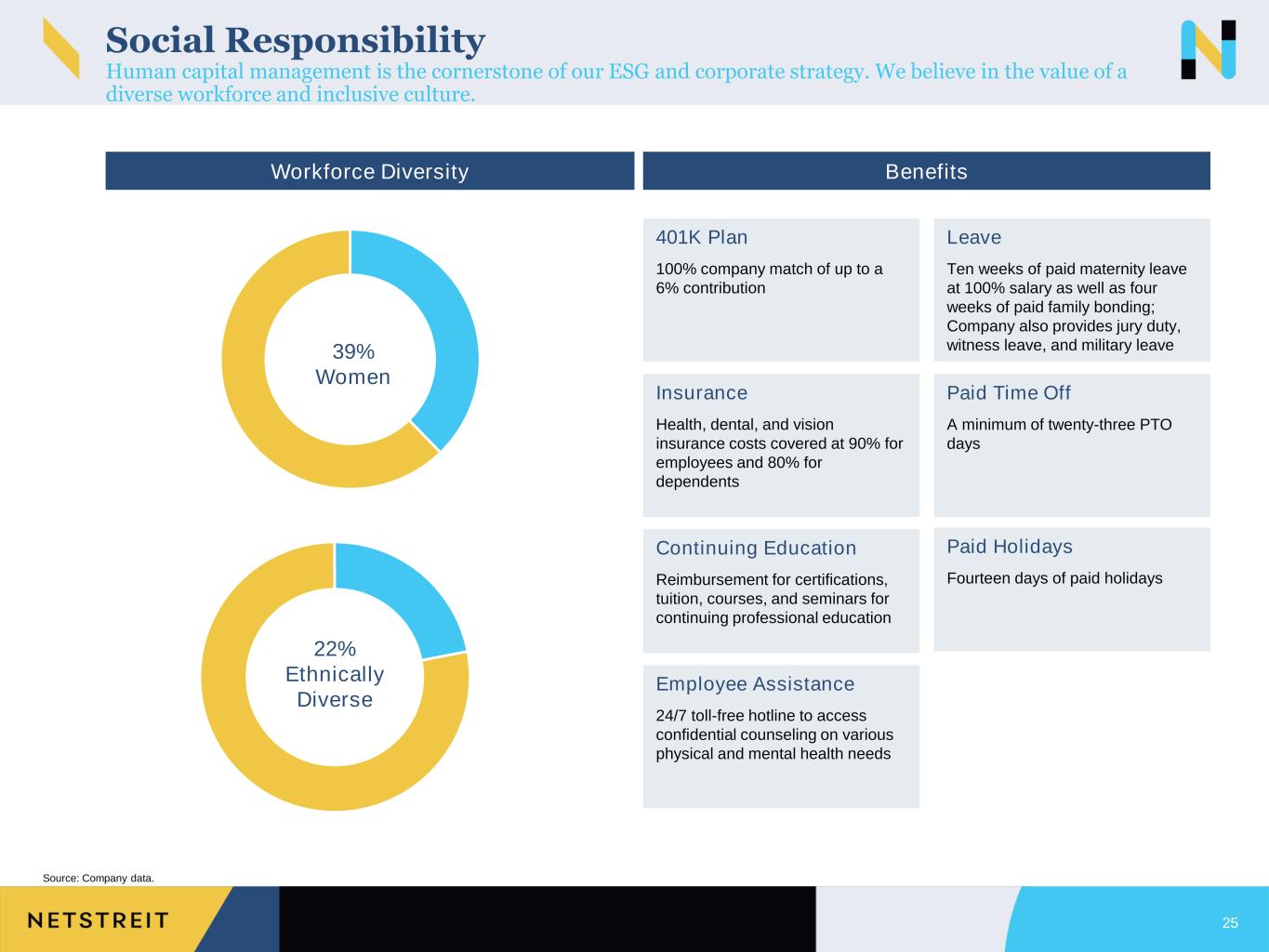 4.9x 3.8x 3.5x 2.9x NR NR FCPT NTST EPRT O NNN ADC 97% 22% 78% 26% 18% 56%18% 15% 10% 48% 3% 40% 15% 5% FCPT NTST EPRT ADC O NNN Service Discount Necessity 55% 68% 55% 28% 14% 0% ADC FCPT NTST O NNN EPRT 3.2% 10.3% 17.4% 19.6% 23.4% 25.3% EPRT NTST ADC NNN O FCPT Source: Public filings as of March 31, 2025. 1. Examples of service includes convenience stores, quick service restaurants, automotive service, and health and fitness. Examples of discount include dollar store and discount retail. Examples of necessity include, drug stores & pharmacy, home improvement, auto parts, and banking. Realty Income’s portfolio composition reflects their Top 20 industries only as they no longer disclose their complete list of industries. Portfolio Highlights Relative to Peers NTST’s Stable & Predictable Cash Flow Profile Drives Superior Risk-Adjusted Returns Lease Rollover Through 2028 Unit-Level Rent Coverage Investment Grade % Portfolio Composition1 Weighted-Average Lease Term 20 14.0 9.7 8.0 9.9 9.1 7.3