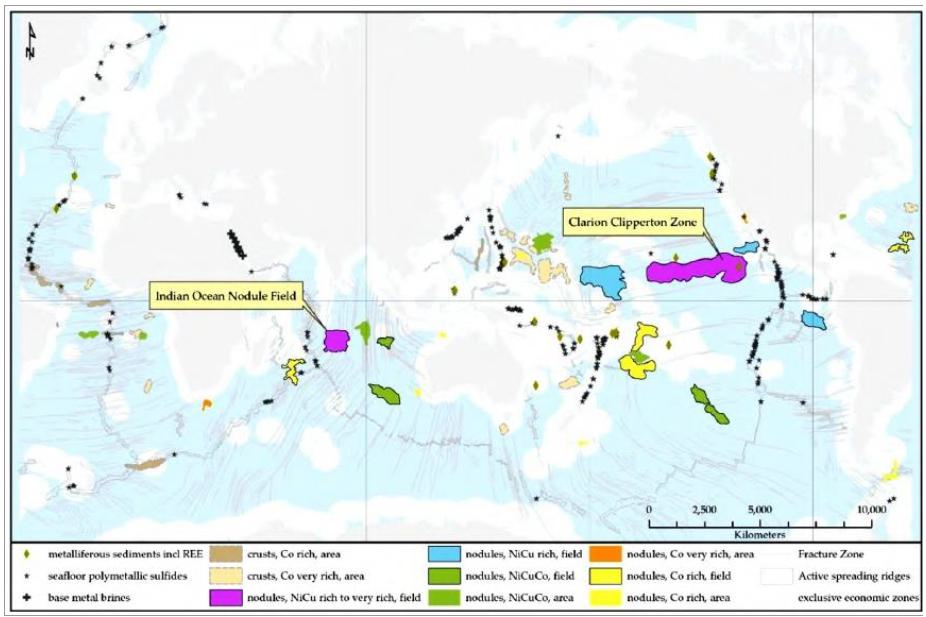 Hein et al. 2013, Hein, J., Mizell, K., Koschinsky, A., and Conrad, T., 2013. Deep-ocean mineral deposits as a source of critical metals for high- and green-technology applications: Comparison with land-based resources. Ore Geology Reviews, 51, 1-14.