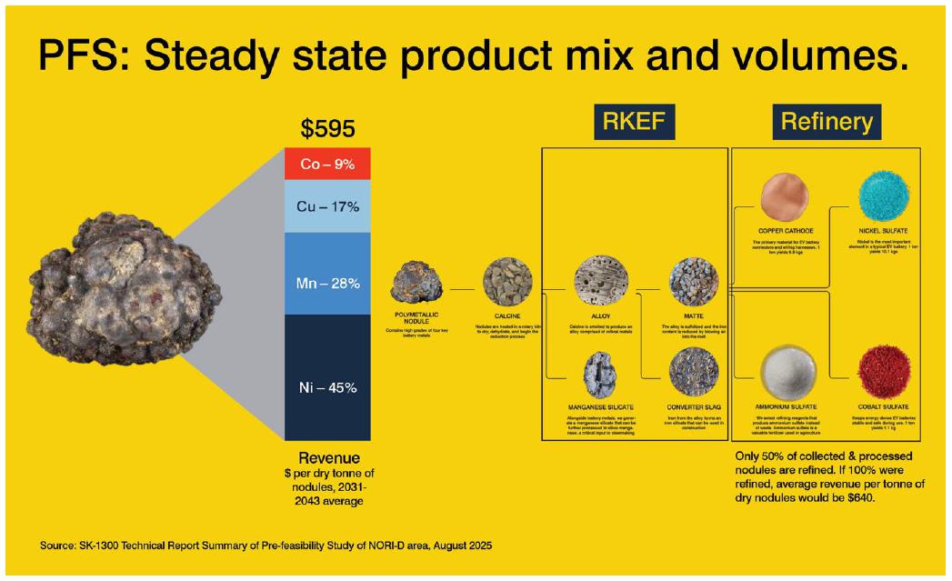 | · | World-first Pre-Feasibility Study (PFS) for a polymetallic nodule project in the NORI-D area with a Net Present Value (NPV) of $5.5 billion |