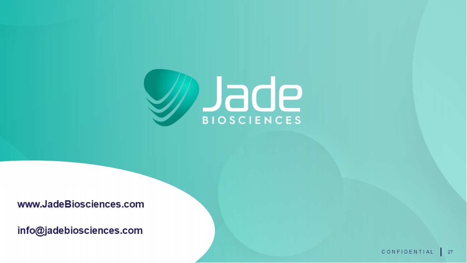 27 CONFIDENTIAL www.JadeBiosciences.com info@jadebiosciences.com