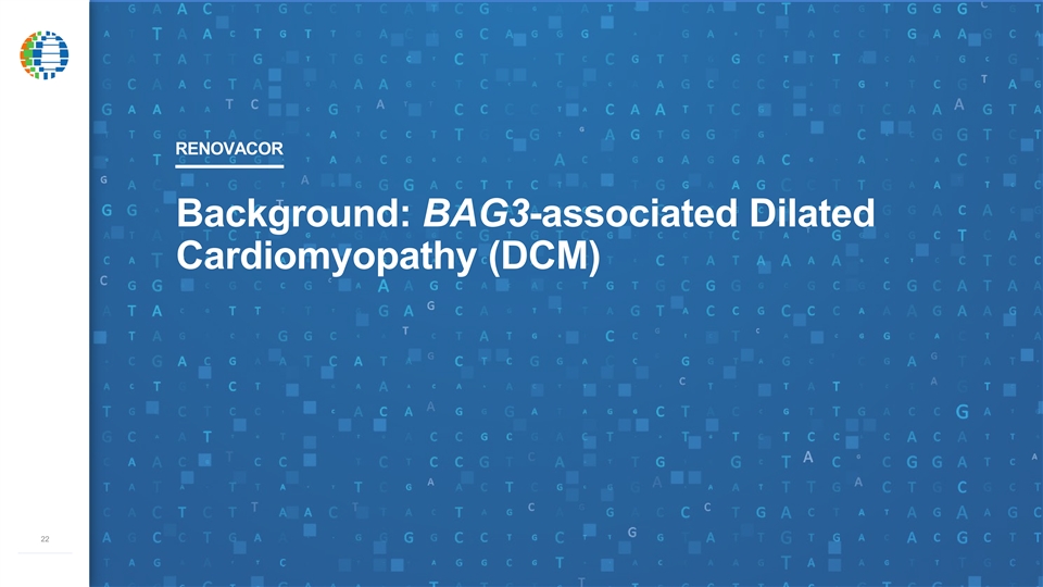 RENOVACOR Background: BAG3-associated Dilated Cardiomyopathy (DCM) 22 –––––––––––––RENOVACOR Background: BAG3-associated Dilated Cardiomyopathy (DCM) 22 –––––––––––––