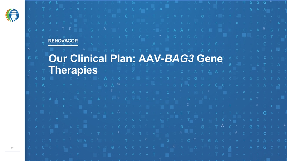 RENOVACOR Our Clinical Plan: AAV-BAG3 Gene Therapies 26 –––––––––––––RENOVACOR Our Clinical Plan: AAV-BAG3 Gene Therapies 26 –––––––––––––