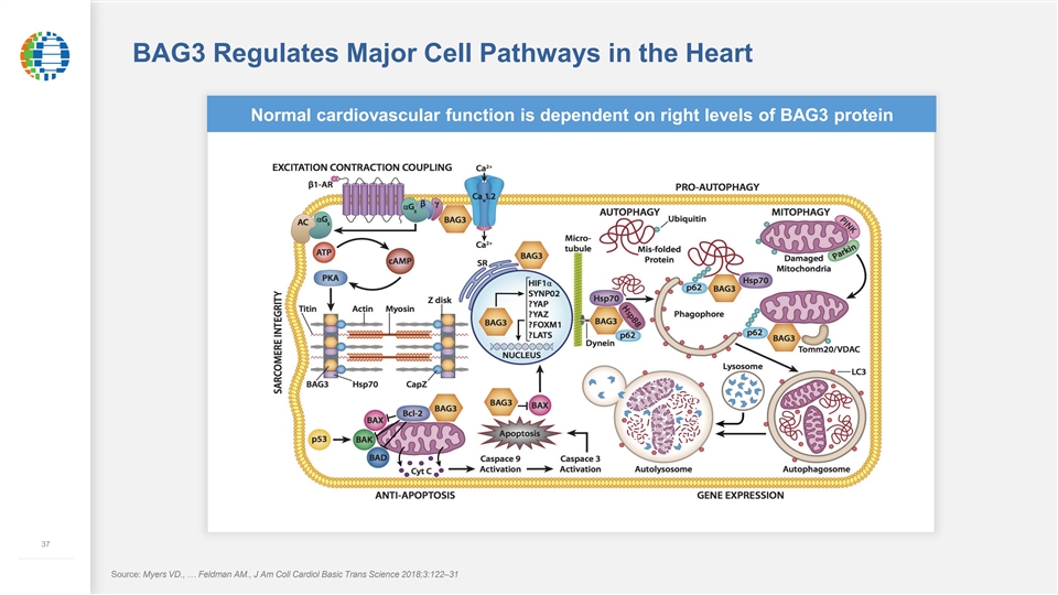 BAG3 Regulates Major Cell Pathways in the Heart Normal cardiovascular function is dependent on right levels of BAG3 protein 37 ––––––––––––– Source: Myers VD., … Feldman AM., J Am Coll Cardiol Basic Trans Science 2018;3:122–31BAG3 Regulates Major Cell Pathways in the Heart Normal cardiovascular function is dependent on right levels of BAG3 protein 37 ––––––––––––– Source: Myers VD., … Feldman AM., J Am Coll Cardiol Basic Trans Science 2018;3:122–31