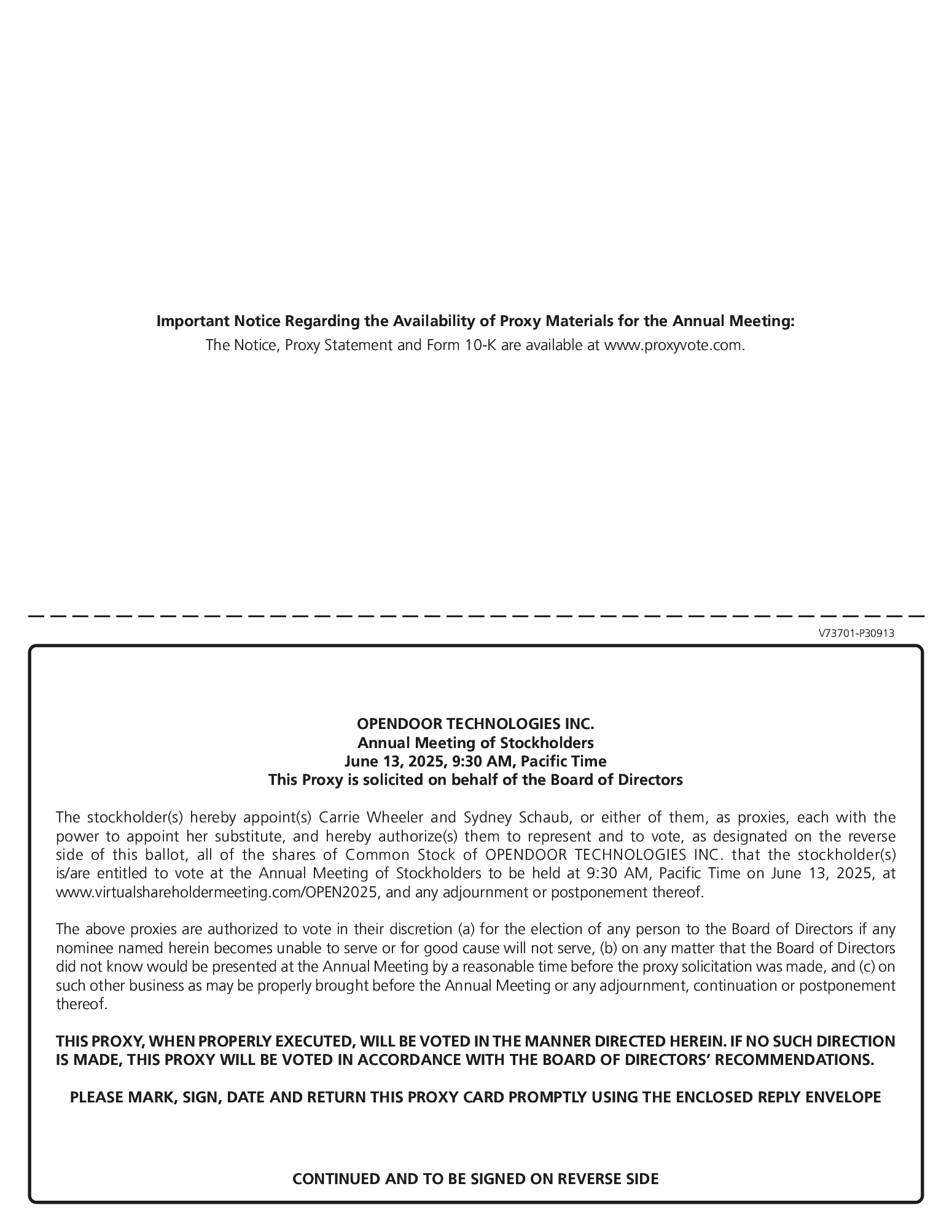 Our Bylaws and Corporate Governance Guidelines provide our Board with flexibility to combine or separate the positions of Chair of the Board and CEO. We believe that it is in the best interests of the Company to maintain the flexibility to evaluate our leadership structure over time as part of Opendoor’s ongoing succession planning process. Our current Board leadership structure comprises a combined Chair of the Board and CEO and a lead independent director. Our Board exercises its judgment in combining or separating the roles of Chair of the Board and CEO as it deems appropriate in light of prevailing circumstances.