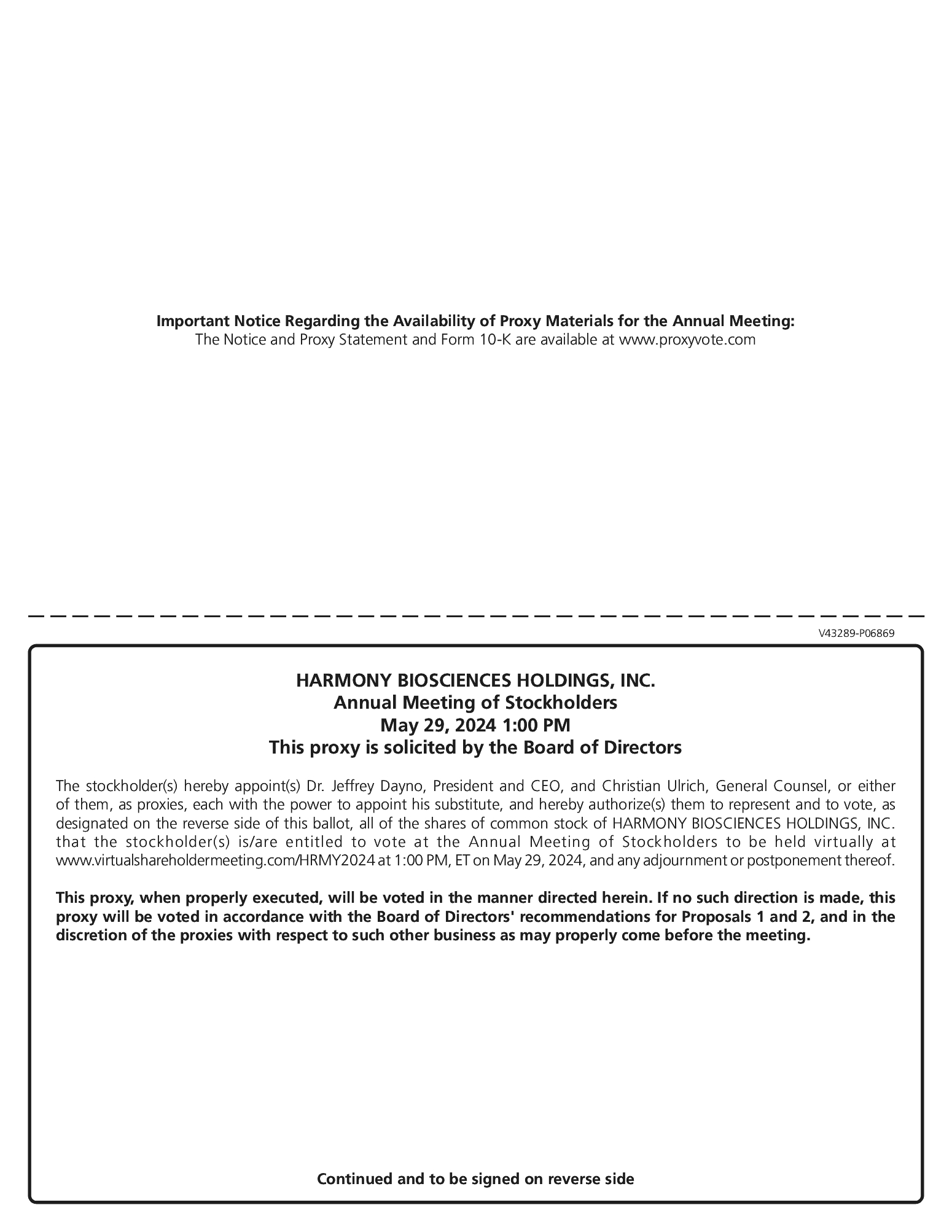 In connection with Mr. Jacobs’ resignation, we agreed to extend the exercise period of his vested stock options until April 20, 2023, in exchange for his release of all claims against Harmony and its affiliates.