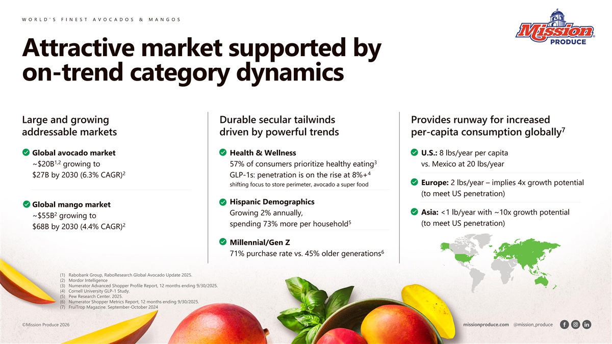 Investor Presentation March 2026 The contents of this presentation are Mission Produce proprietary and for informational purposes only. Not for redistribution or external use. Any information, content, or recommendations included herein shall not be construed as a guarantee of future results. We make no representations or warranties, and expressly disclaim any representations or warranties, as to the validity, accuracy, or completeness of the information contained herein.
