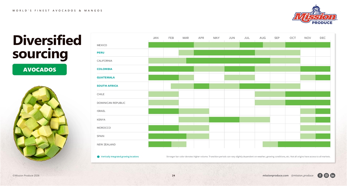 W O R L D ’ S F I N E S T A V O C A D O S & M A N G O S Diversified sourcing AVOCADOS ©Mission Produce 2026 24