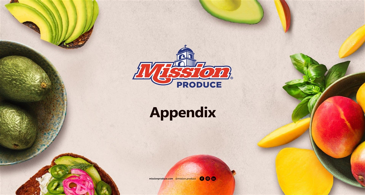 W O R L D ’ S F I N E S T A V O C A D O S & M A N G O S Non-GAAP reconciliations ©Mission Produce 2026 22