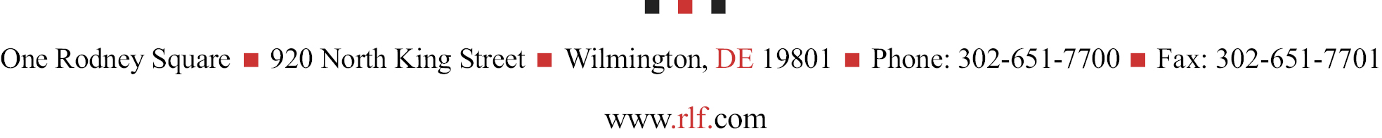 This opinion is limited to the laws of the State of Delaware (excluding the securities laws of the State of Delaware), and we have not considered and express no opinion on the laws of any other jurisdiction, including federal laws and rules and regulations relating thereto. Our opinions are rendered only with respect to Delaware laws and rules, regulations and orders thereunder which are currently in effect.