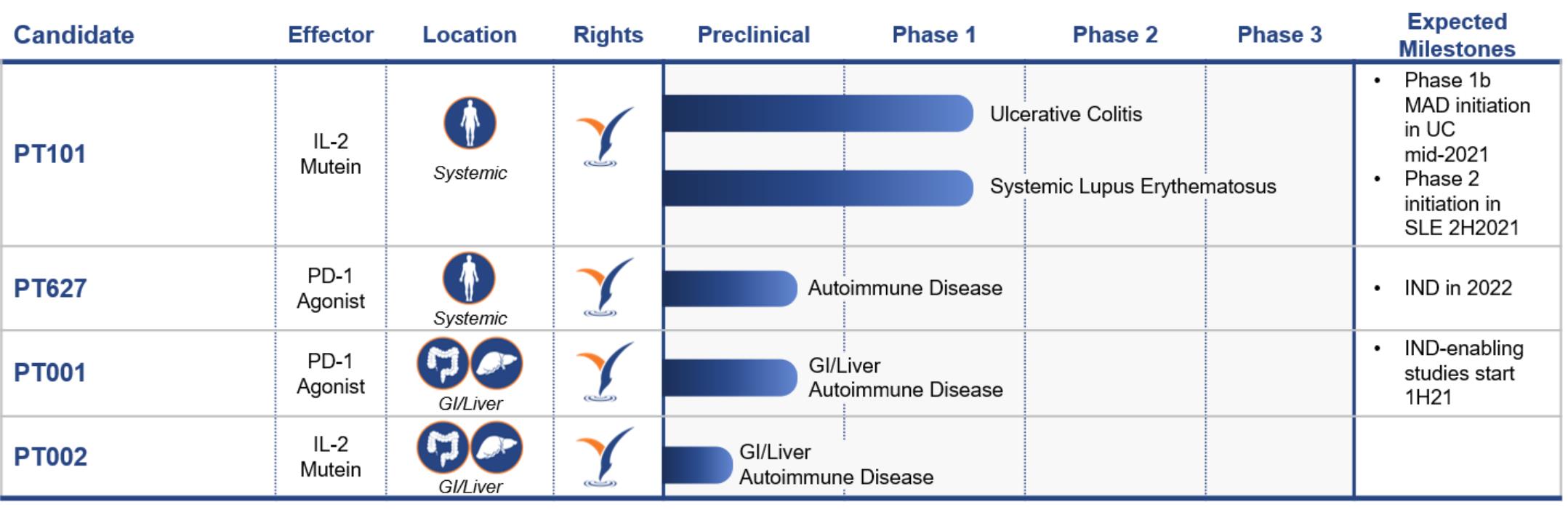the initiation, timing, progress and results of our current and future preclinical studies and clinical trials, including the planned Phase 1b/2a clinical trial of PT101 in patients with ulcerative colitis and the planned Phase 2 clinical trial in patients with systemic lupus erythematosus; |