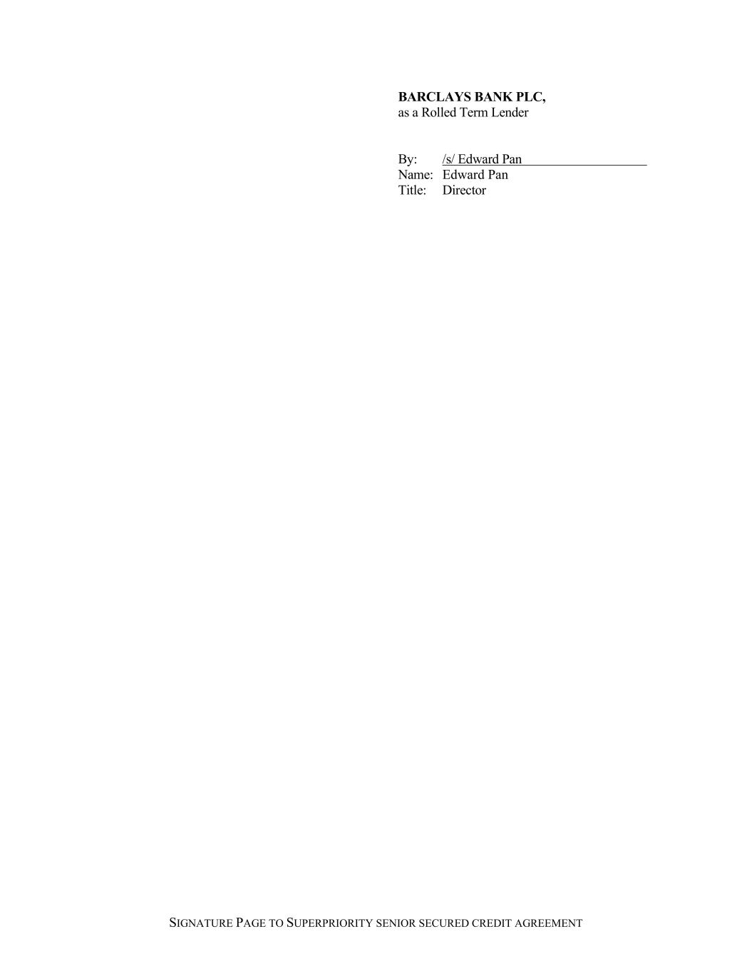 SIGNATURE PAGE TO SUPERPRIORITY SENIOR SECURED CREDIT AGREEMENT BARCLAYS BANK PLC, as a Rolled Term Lender By: /s/ Edward Pan Name: Edward Pan Title: Director