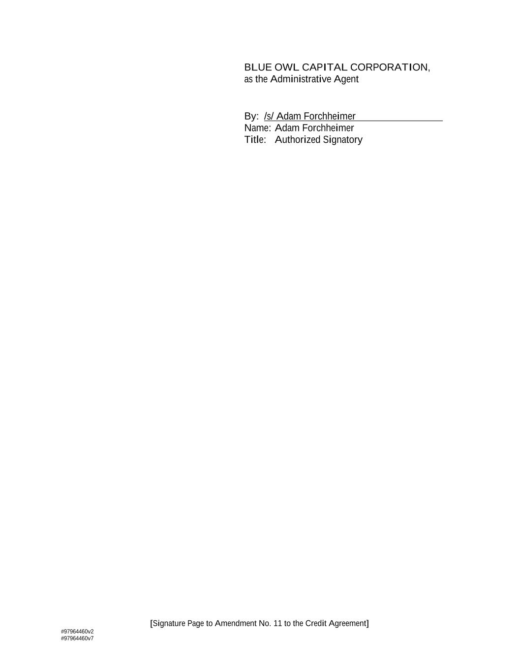 [Signature Page to Amendment No. 11 to the Credit Agreement] #97964460v2 #97964460v7 BLUE OWL CAPITAL CORPORATION, as the Administrative Agent By: /s/ Adam Forchheimer Name: Adam Forchheimer Title: Authorized Signatory