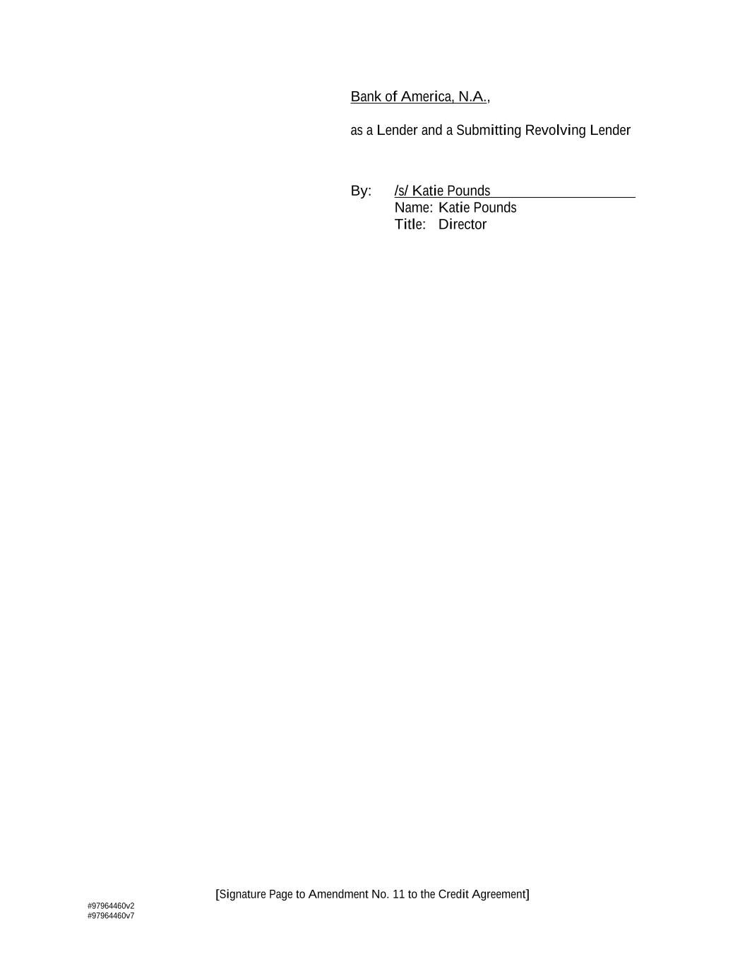 [Signature Page to Amendment No. 11 to the Credit Agreement] #97964460v2 #97964460v7 Bank of America, N.A., as a Lender and a Submitting Revolving Lender By: /s/ Katie Pounds Name: Katie Pounds Title: Director