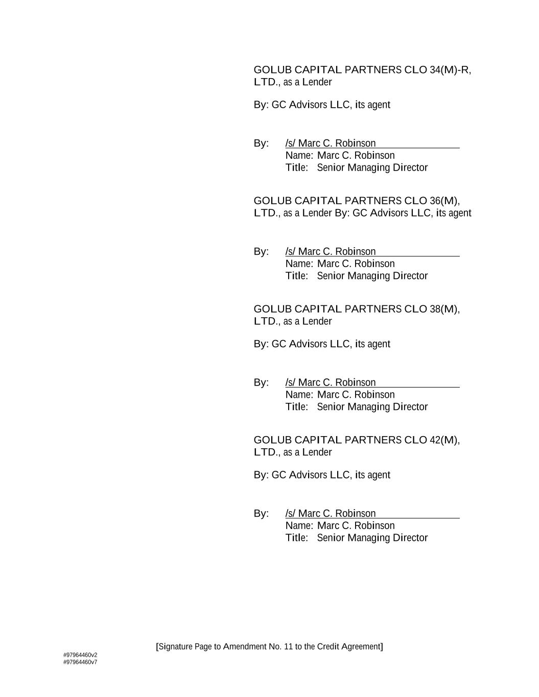 [Signature Page to Amendment No. 11 to the Credit Agreement] #97964460v2 #97964460v7 GOLUB CAPITAL PARTNERS CLO 34(M)-R, LTD., as a Lender By: GC Advisors LLC, its agent By: /s/ Marc C. Robinson Name: Marc C. Robinson Title: Senior Managing Director GOLUB CAPITAL PARTNERS CLO 36(M), LTD., as a Lender By: GC Advisors LLC, its agent By: /s/ Marc C. Robinson Name: Marc C. Robinson Title: Senior Managing Director GOLUB CAPITAL PARTNERS CLO 38(M), LTD., as a Lender By: GC Advisors LLC, its agent By: /s/ Marc C. Robinson Name: Marc C. Robinson Title: Senior Managing Director GOLUB CAPITAL PARTNERS CLO 42(M), LTD., as a Lender By: GC Advisors LLC, its agent By: /s/ Marc C. Robinson Name: Marc C. Robinson Title: Senior Managing Director