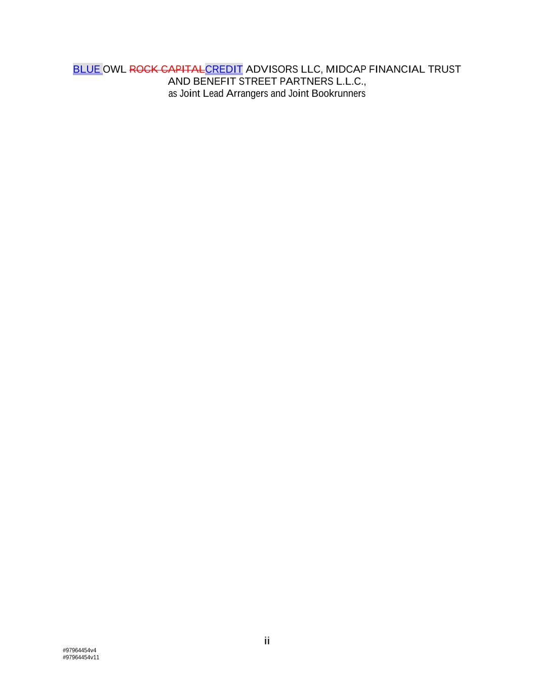 ii #97964454v4 #97964454v11 BLUE OWL ROCK CAPITALCREDIT ADVISORS LLC, MIDCAP FINANCIAL TRUST AND BENEFIT STREET PARTNERS L.L.C., as Joint Lead Arrangers and Joint Bookrunners