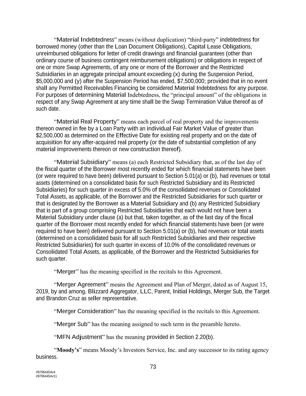 10 #97964454v4 #97964454v11 (gh) with respect to any Class B Revolving Loan on and after the Amendment No. 5 Effective Date (i) that is an ABR Loan, 3.00% per annum or (ii) that is a SOFR Loan, 4.00% per annum. “Approved Bank” has the meaning assigned to such term in the definition of “Cash Equivalents.” “Approved Foreign Bank” has the meaning assigned to such term in the definition of “Cash Equivalents.” “Approved Fund” means, with respect to any Lender, any Person (other than a natural person) that is engaged in making, purchasing, holding or otherwise investing in commercial loans, bonds and/or similar extensions of credit in the ordinary course of its activities and is administered, advised or managed by (a) such Lender, (b) any Affiliate of such Lender or (c) any entity or any Affiliate of any entity that administers, advises or manages such Lender. “April TL Prepayment” has the meaning assigned to such term in Amendment No. 11. “ASC 606” means the Financial Accounting Standards Board Accounting Standards Certification Topic No. 606, as amended. “Assignment and Assumption” means an assignment and assumption entered into by a Lender and an Eligible Assignee (with the consent of any Person whose consent is required by Section 9.04), or as otherwise required to be entered into under the terms of this Agreement, substantially in the form of Exhibit A or any other form reasonably approved by the Administrative Agent. “Audited Financial Statements” means the audited consolidated balance sheet of the Target and its consolidated subsidiaries as of December 31, 2017 and December 31, 2018 and the related audited consolidated statements of operations and consolidated statements of comprehensive income, consolidated statements of changes in Redeemable Class B Units and members’ equity and consolidated audited statements of cash flows for the fiscal years ended December 31, 2017 and December 31, 2018. “Available Amount” means, at any date of determination, a cumulative amount equal to (without duplication): (a) an amount (which shall not be less than zero) equal to the Available Excess Cash Flow Amount as of such date, plus (b) (i) the Net Proceeds of sales of Investments and (ii) Returns, profits, distributions and similar amounts on Investments (not to exceed the original amount of such Investments), in the case of each of clause (i) and (ii), to the extent (x) received by the Borrower and the Restricted Subsidiaries after the Effective Date and on or prior to such date, (y) in the form of cash or Cash Equivalents and (z) such Investment was made using the Available Amount, plus (c) Investments of the Borrower or any Restricted Subsidiary in any Unrestricted Subsidiary or any third party (including any Joint Venture) that has been re-designated as a