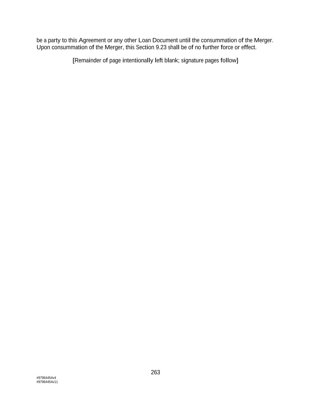 263 #97964454v4 #97964454v11 be a party to this Agreement or any other Loan Document until the consummation of the Merger. Upon consummation of the Merger, this Section 9.23 shall be of no further force or effect. [Remainder of page intentionally left blank; signature pages follow]