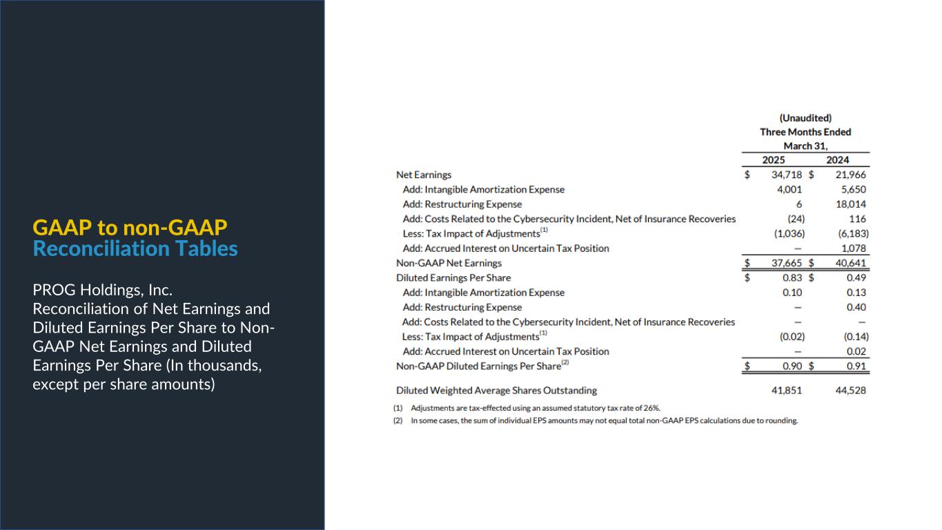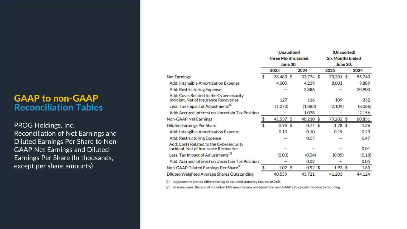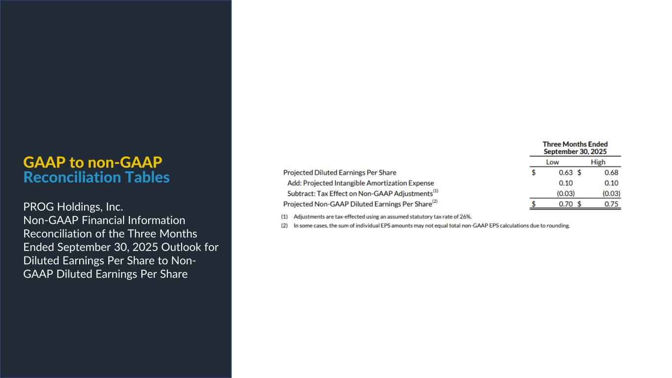 GAAP to non-GAAP Reconciliation Tables PROG Holdings, Inc. Non-GAAP Financial Information Reconciliation of the Three Months Ended September 30, 2025 Outlook for Diluted Earnings Per Share to Non- GAAP Diluted Earnings Per Share
