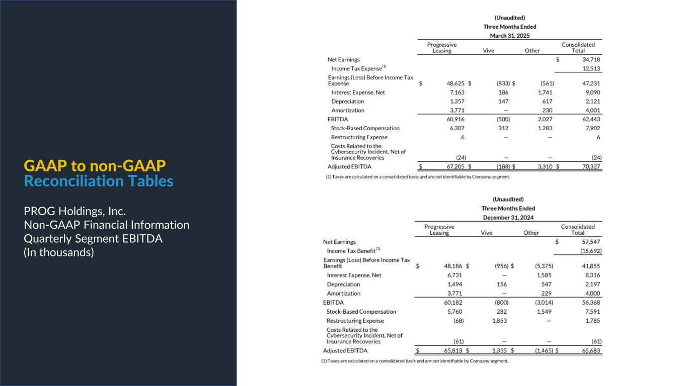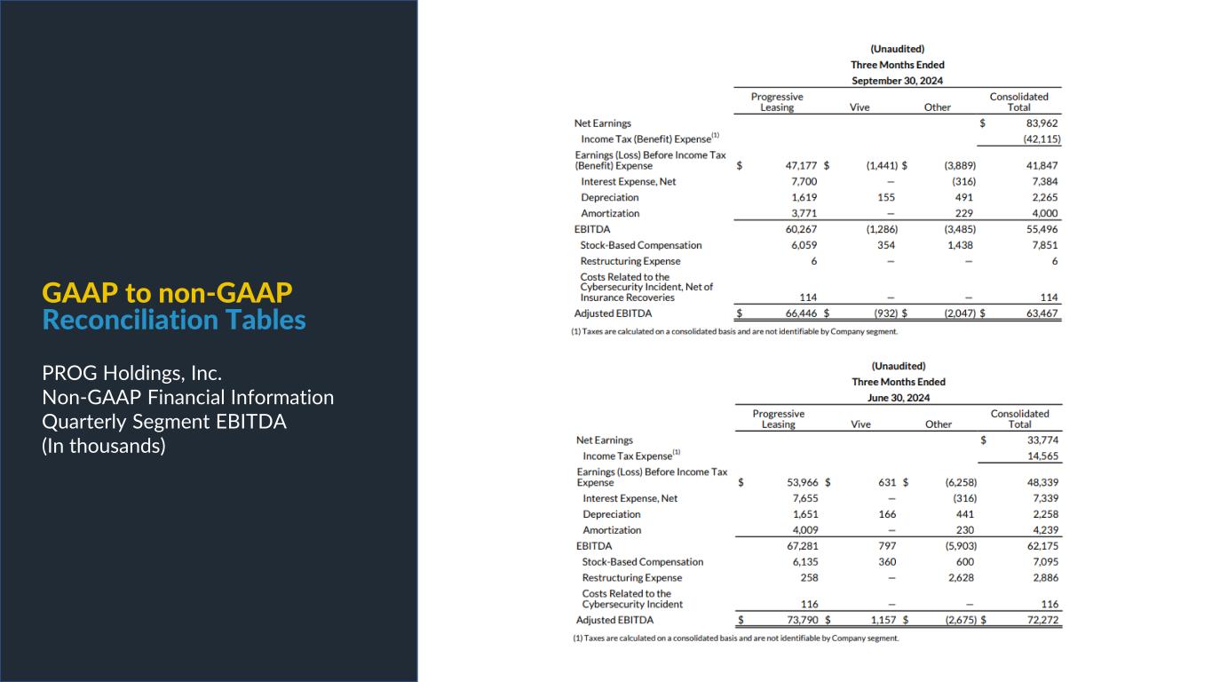 PROG Internal GAAP to non-GAAP Reconciliation Tables PROG Holdings, Inc. Non-GAAP Financial Information Reconciliation of the Three Months Ended September 30, 2025 Outlook for Adjusted EBITDA (In thousands)