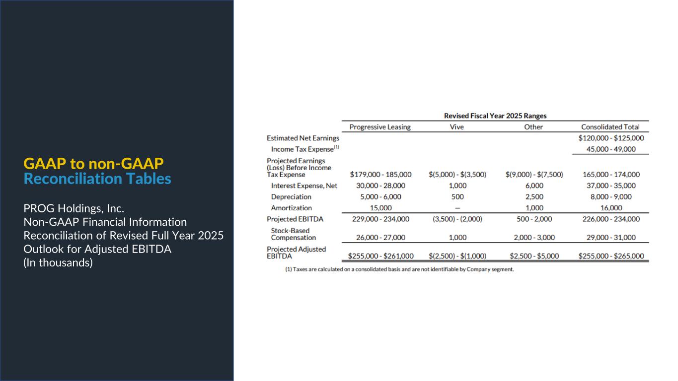 PROG Internal GAAP to non-GAAP Reconciliation Tables PROG Holdings, Inc. Non-GAAP Financial Information Reconciliation of Revised Full Year 2025 Outlook for Adjusted EBITDA (In thousands)