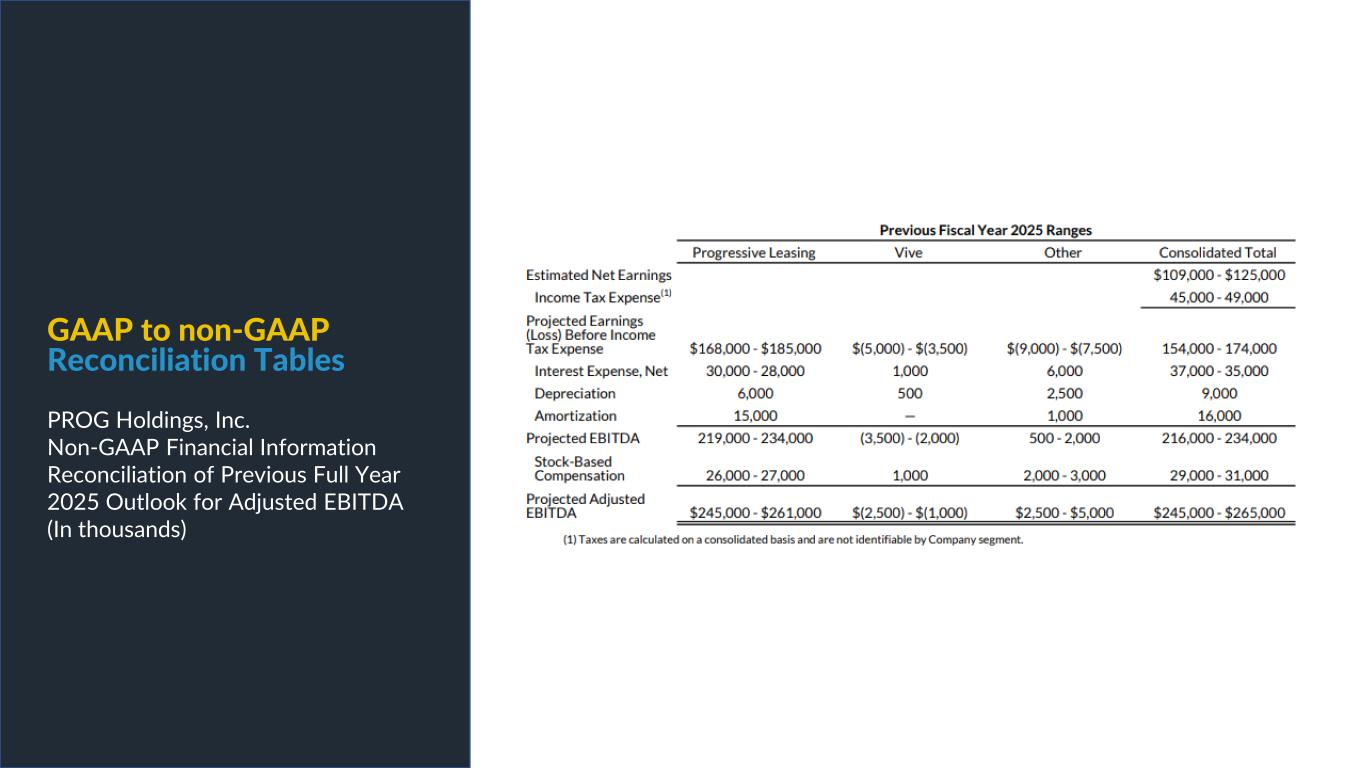 PROG Internal GAAP to non-GAAP Reconciliation Tables PROG Holdings, Inc. Non-GAAP Financial Information Reconciliation of Previous Full Year 2025 Outlook for Adjusted EBITDA (In thousands)