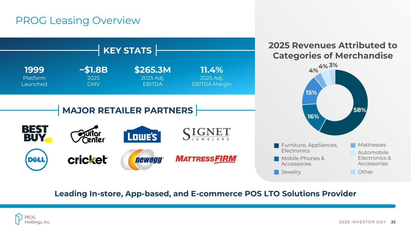 2026 INVESTOR DAY 24 Key Messages 1 Capitalizing on growing consumer need for lease-to- own flexible payment solutions Building on our leadership position as the leasing partner of choice for large, national retailers 2 Expanding the availability and accessibility of lease-to-own solutions through a growing direct-to-consumer platform3 Investing in advanced technology capabilities to deliver a modernized, frictionless customer experience and a future-ready business 4