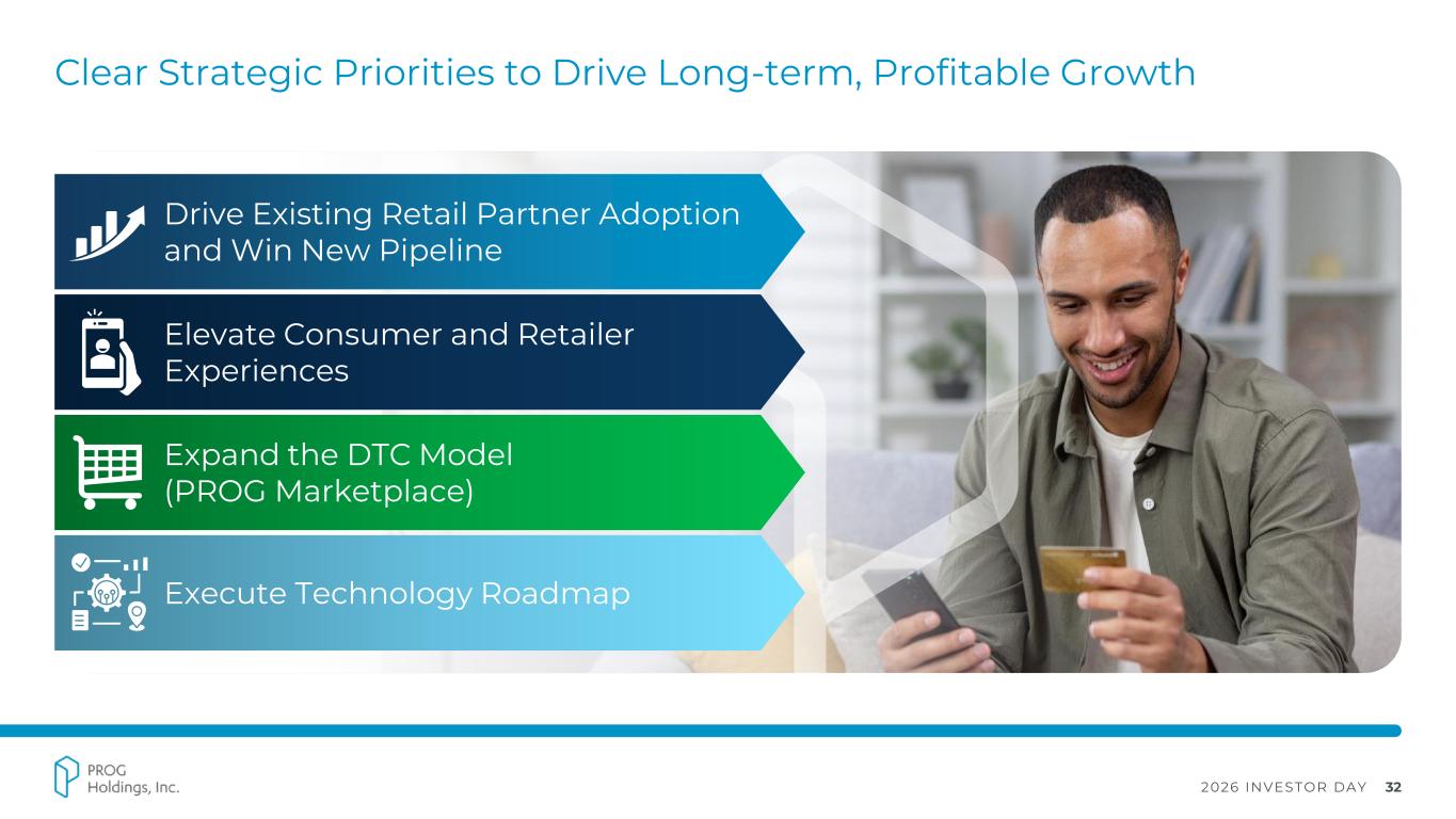 2026 INVESTOR DAY 31 Well Positioned to Capitalize on Industry Growth Drivers Over 100M Americans are credit underserved with a growing interest from younger, unbanked customers Increasing interest from national retailers Pent-up demand tied to replacement cycle of old products Expanding utilization within emerging verticals