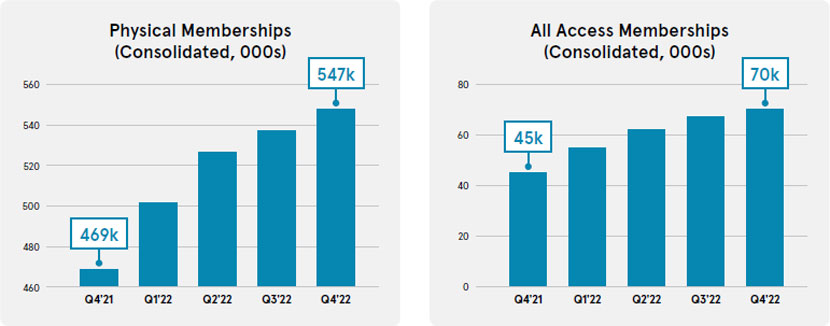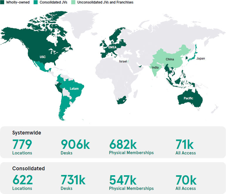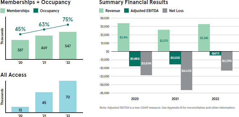 We supplement our GAAP financial results by evaluating Adjusted EBITDA which is a non-GAAP measure. We define “Adjusted EBITDA” as net loss before income tax (benefit) provision, interest and other (income) expenses, net, depreciation and amortization, restructuring and other related (gains) costs, impairment expense/(gain on sale) of goodwill, intangibles and other assets, stock-based compensation expense, stock-based payments for services rendered by consultants, change in fair value of contingent consideration liabilities, legal, tax and regulatory reserves or settlements, legal costs incurred by the Company in connection with regulatory investigations and litigation regarding the Company’s 2019 withdrawn initial public offering and the related execution of the SoftBank Transactions, as defined in Note 1 of the Notes to the Consolidated Financial Statements included in the Company’s Annual Report on Form 10-K for the fiscal year ended December 31, 2022 net of any insurance or other recoveries,and expense related to mergers, acquisitions, divestitures and capital raising activities. We define Physical Average Revenue per Membership (“ARPM”) as membership and services revenue less revenue attributable to All Access and On Demand memberships, unconsolidated management fee revenue and workplace management fee revenue, divided by consolidated cumulative physical memberships in the period. Additionally, we define Free Cash Flow as a non-GAAP measure we define as net cash provided by (used in) operating activities less purchases of property, equipment and capitalized software, each as presented in the Company’s condensed consolidated statements of cash flows and calculated in accordance with GAAP.