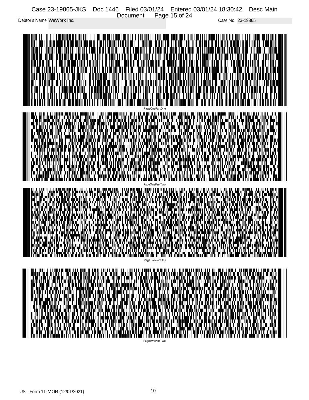 UST Form 11-MOR (12/01/2021) 10 Debtor's Name WeWork Inc. Case No. 23-19865 PageOnePartOne PageOnePartTwo PageTwoPartOne PageTwoPartTwo Case 23-19865-JKS Doc 1446 Filed 03/01/24 Entered 03/01/24 18:30:42 Desc Main Document Page 15 of 24