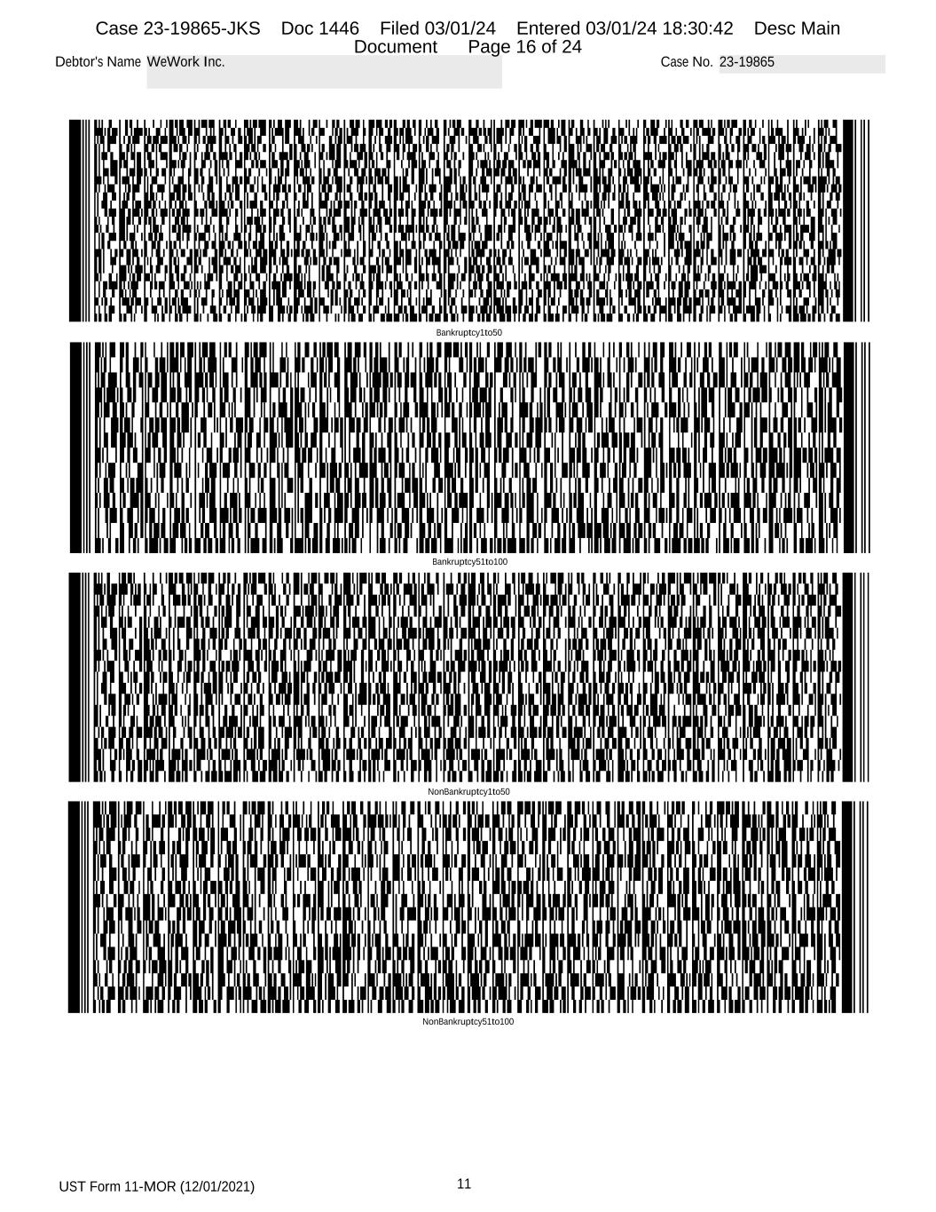 UST Form 11-MOR (12/01/2021) 11 Debtor's Name WeWork Inc. Case No. 23-19865 Bankruptcy51to100 NonBankruptcy1to50 NonBankruptcy51to100 Bankruptcy1to50 Case 23-19865-JKS Doc 1446 Filed 03/01/24 Entered 03/01/24 18:30:42 Desc Main Document Page 16 of 24