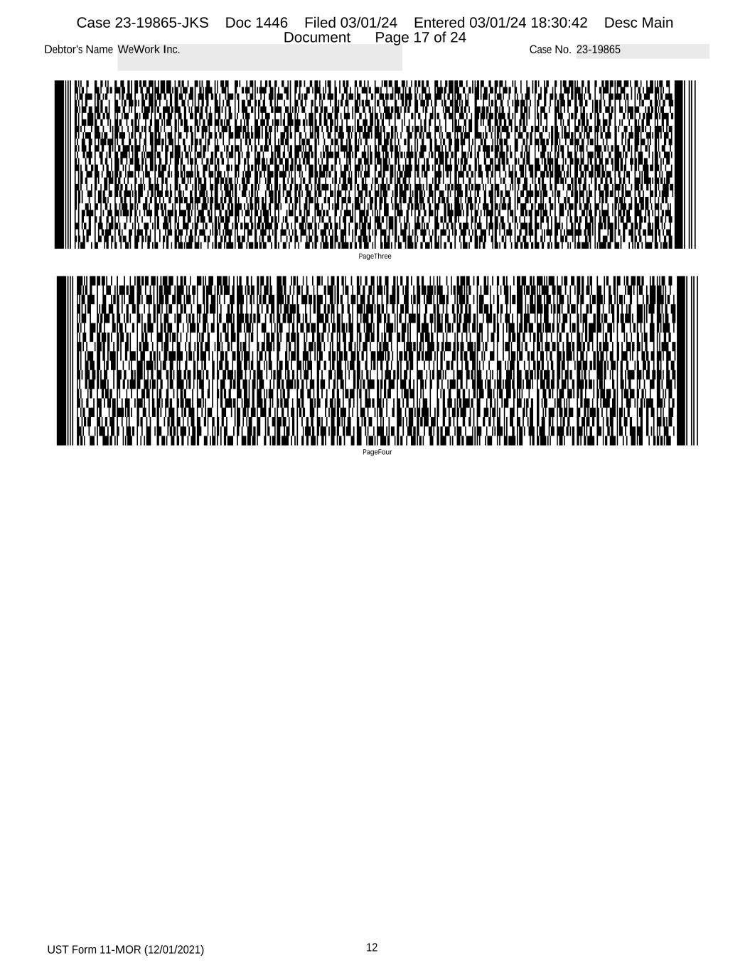 UST Form 11-MOR (12/01/2021) 12 Debtor's Name WeWork Inc. Case No. 23-19865 PageFour PageThree Case 23-19865-JKS Doc 1446 Filed 03/01/24 Entered 03/01/24 18:30:42 Desc Main Document Page 17 of 24